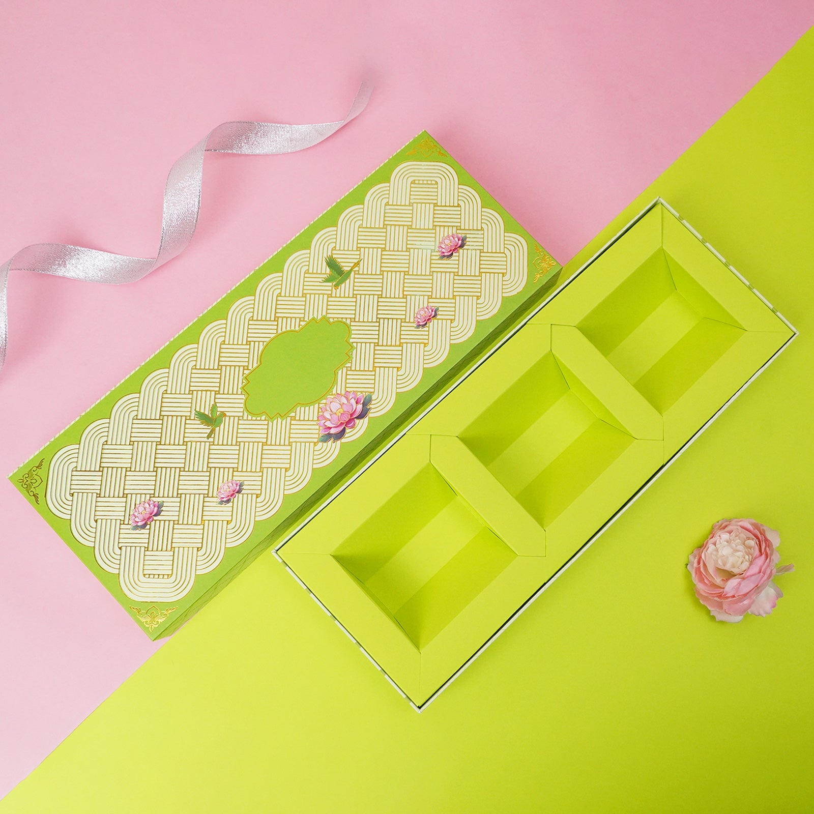 A beautifully designed 3-cavity box ideal for organizing and presenting dry fruits or sweets. Durable, vibrant, and perfect for festive gifting or retail packaging. Bring elegance to your packaging with IN TOO BOX’s handcrafted 3-Cavity Dry Fruit Box featuring a vibrant green lotus-themed design. Built using high-strength food-grade board, this...